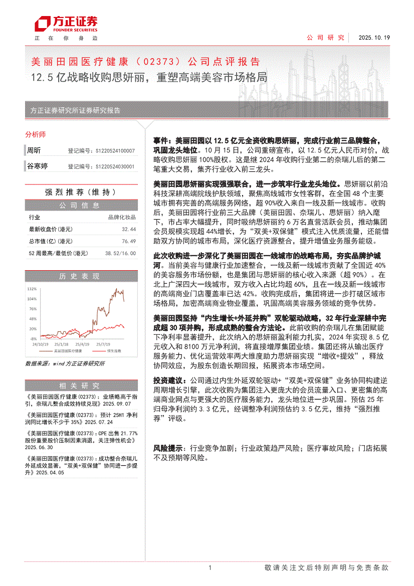 美丽田园医疗健康:方正证券-美丽田园医疗健康-2373.HK-公司点评报告:12.5亿战略收购思妍丽,重塑高端美容市场格局-251019