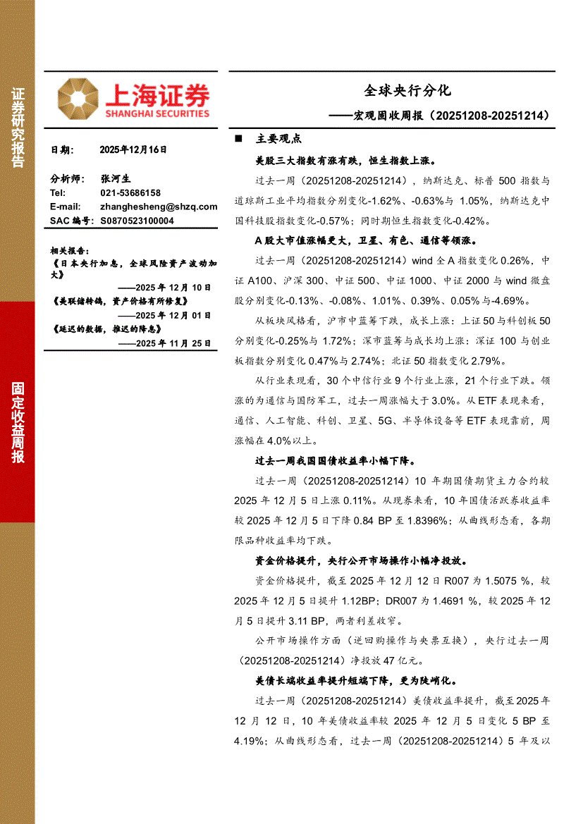 上海证券-宏观固收周报:日本央行加息,全球风险资产波动加大-251210