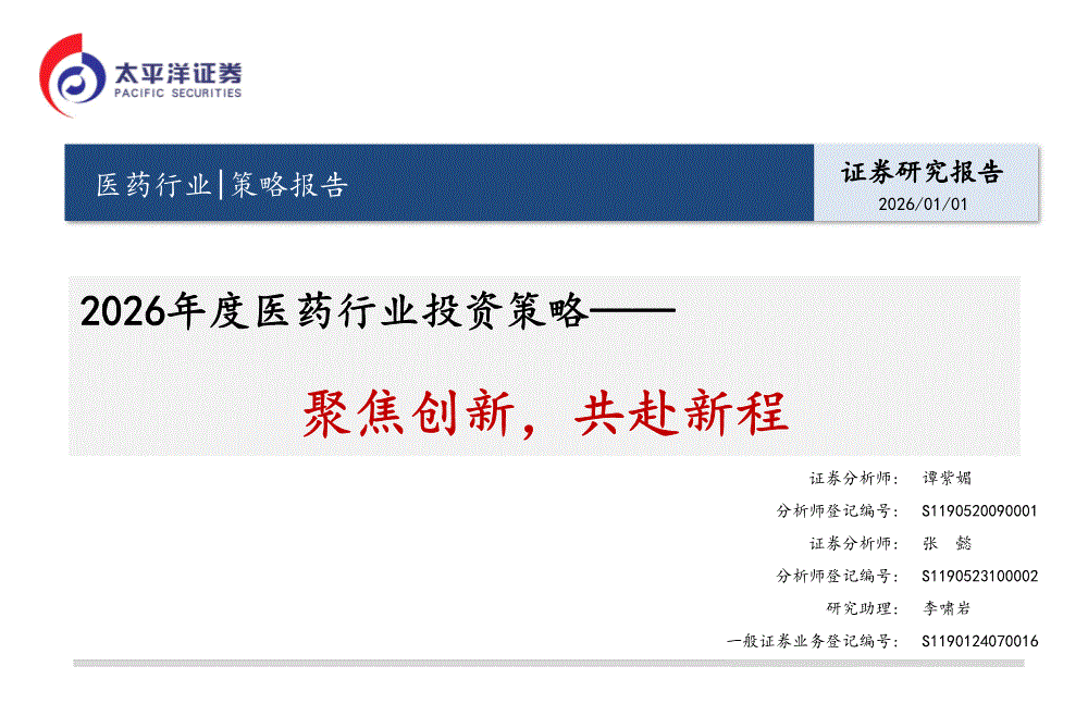 太平洋证券-2026年度医药行业投资策略:聚焦创新,共赴新程-260101