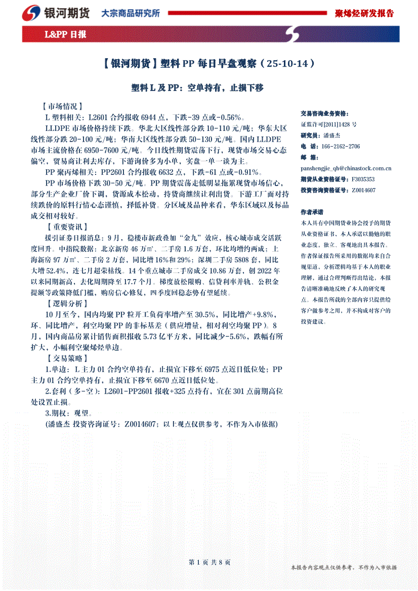 银河期货-塑料PP每日早盘观察-251014