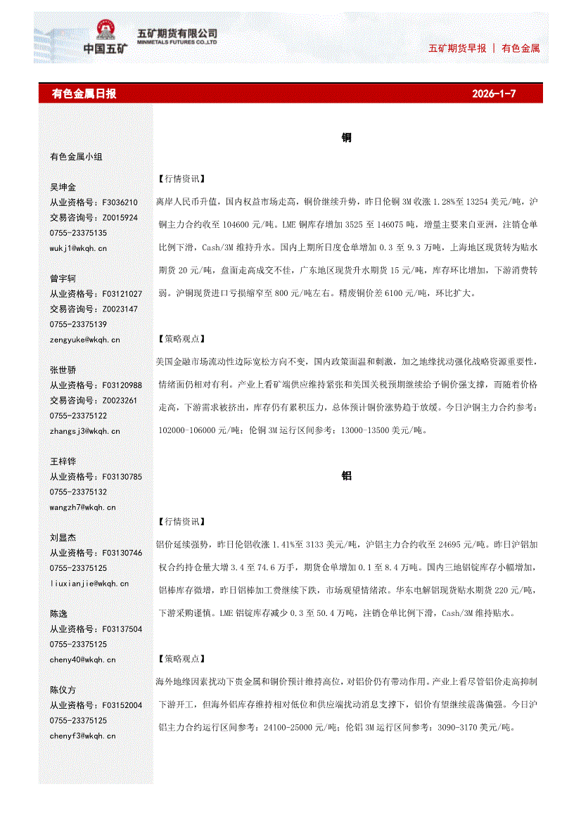 五矿期货-有色金属日报-260107