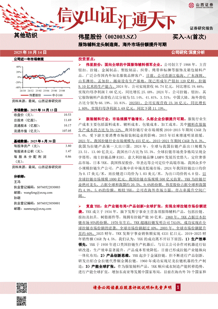 伟星股份:山西证券-伟星股份-002003-服饰辅料龙头制造商,海外市场份额提升可期-251014