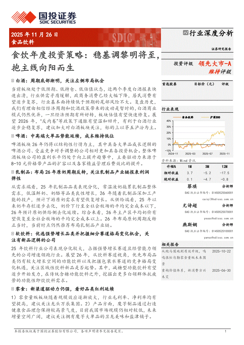 食品饮料行业:国投证券-食品饮料行业年度投资策略:稳基调黎明将至,抱主线向阳而生-251126