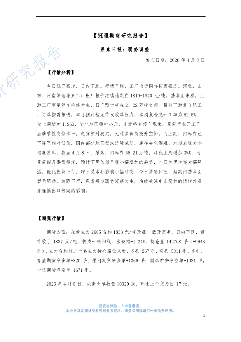冠通期货-尿素日报:关注清明海外情绪传导-260403