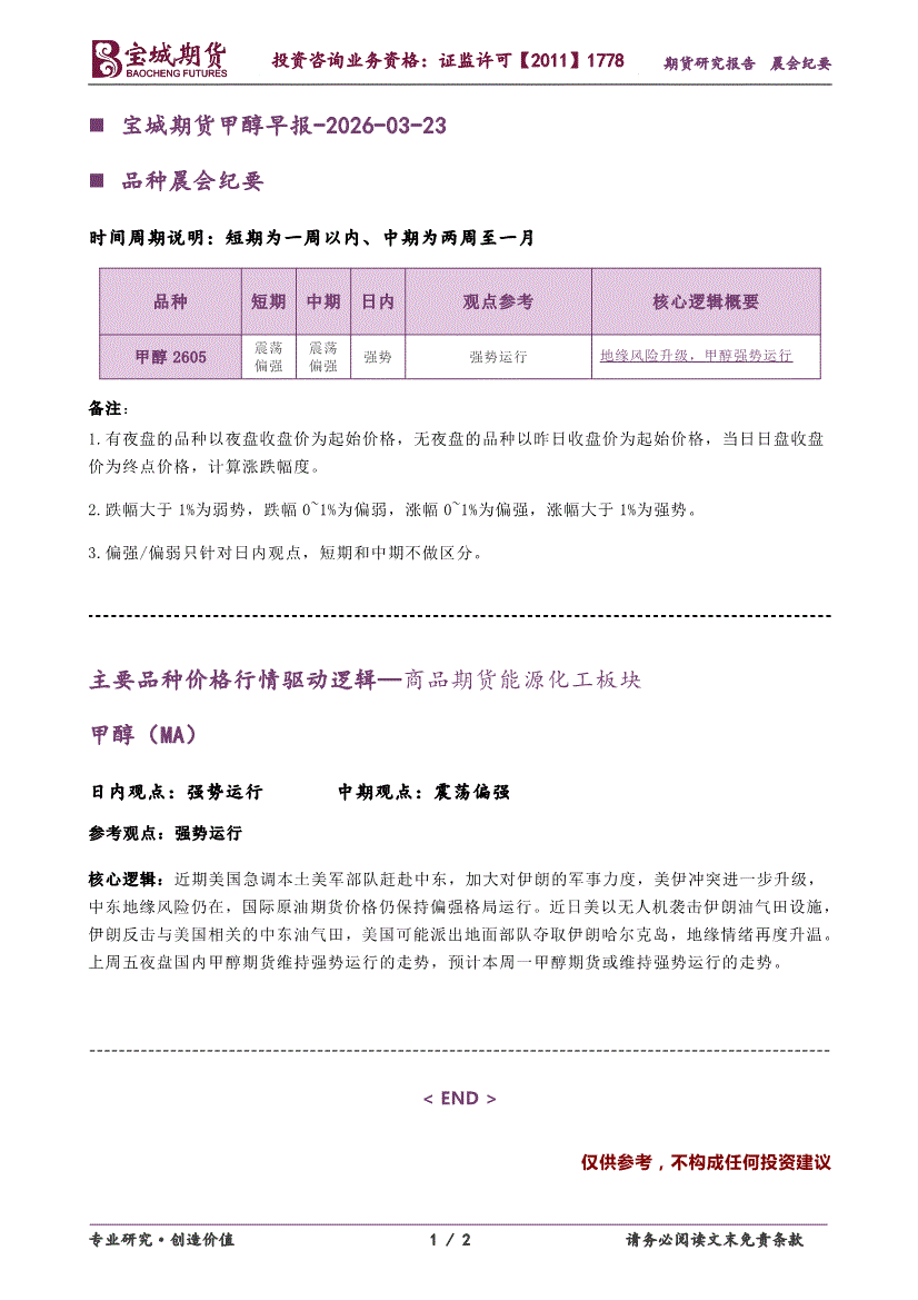 宝城期货-甲醇早报-260323