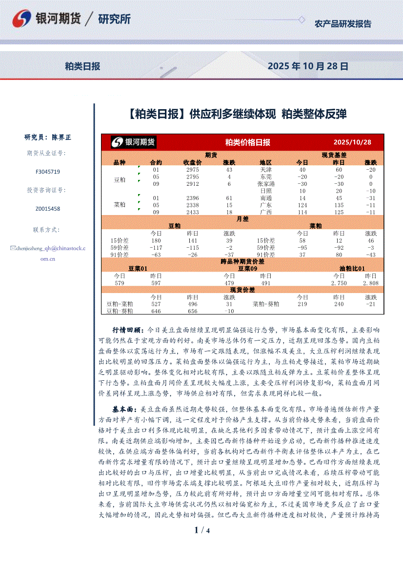 银河期货-【粕类日报】供应利多继续体现,粕类整体反弹-251028