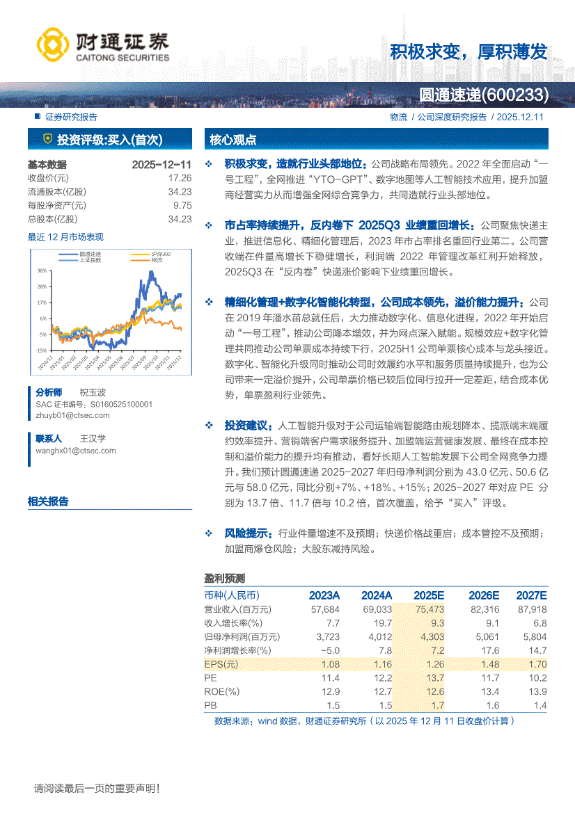 圆通速递:财通证券-圆通速递-600233-积极求变,厚积薄发-251211