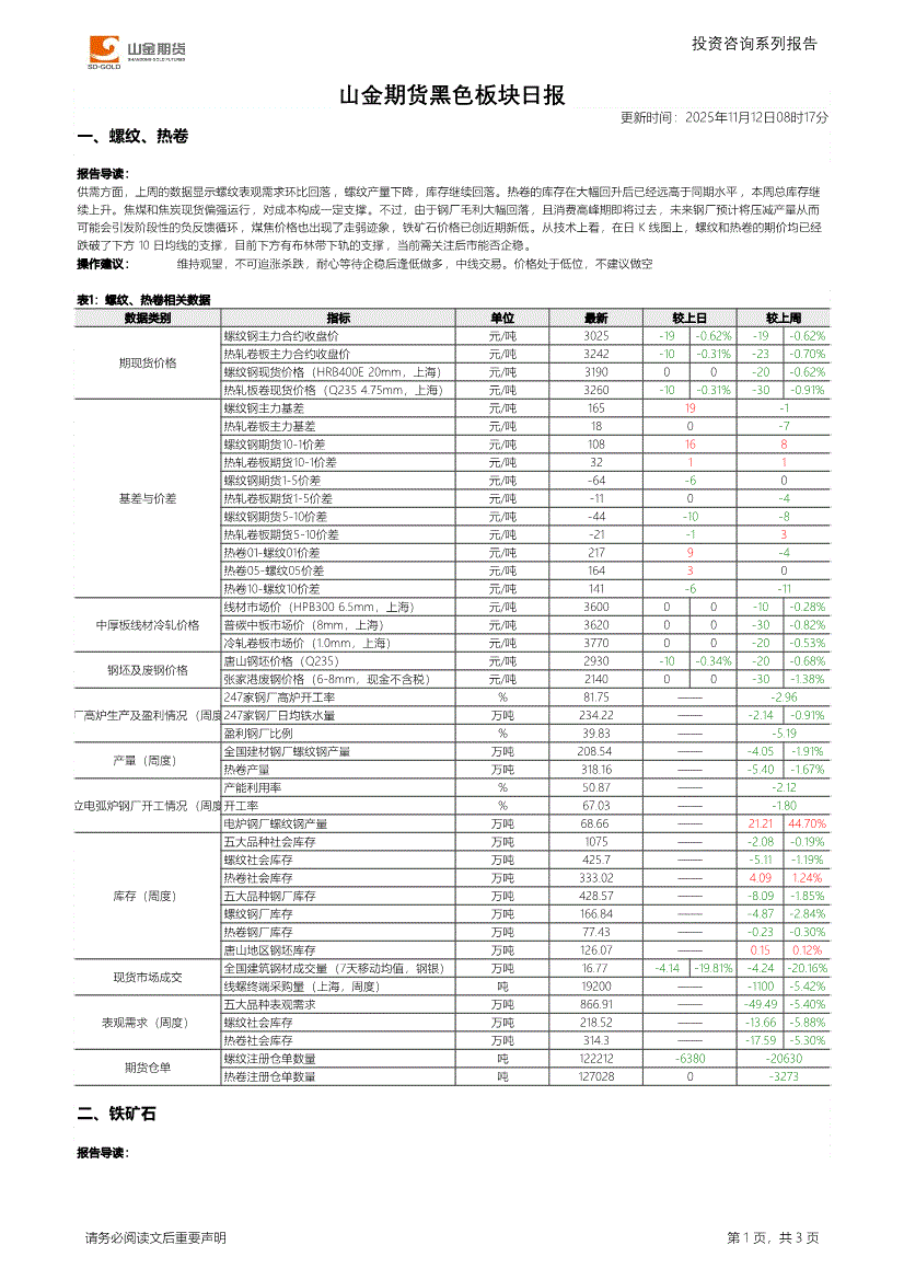 山金期货-螺纹热卷周报:低估值叠加驱动向下,期价仍承压-251117