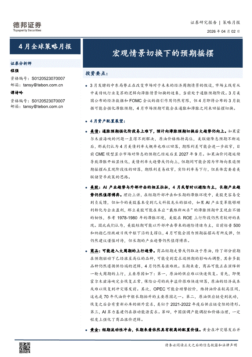 德邦证券-4月全球策略月报:宏观情景切换下的预期摇摆-260402