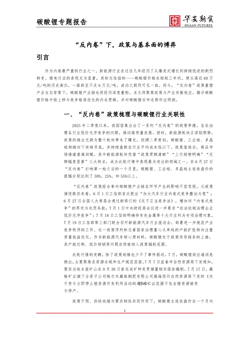 华安期货-碳酸锂专题报告:“反内卷”下,政策与基本面的博弈-250912