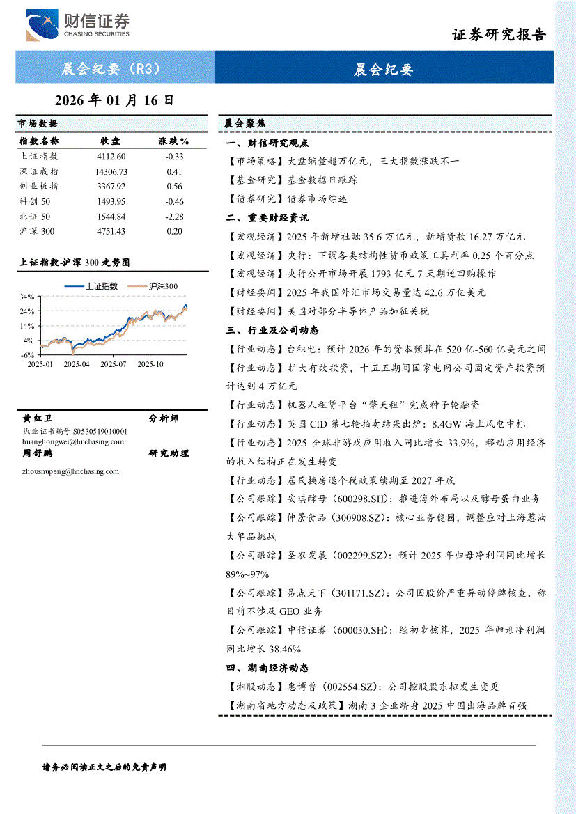财信证券-晨会纪要-260116