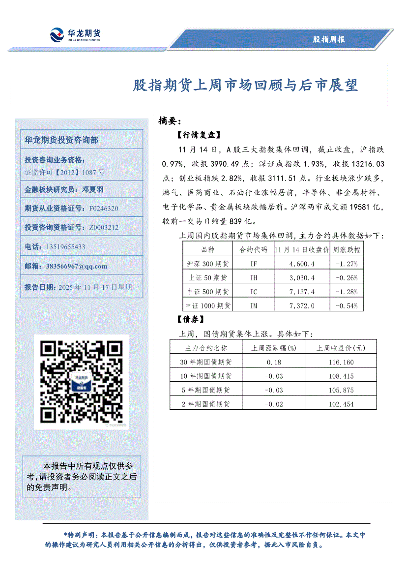 华龙期货-股指周报:股指期货上周市场回顾与后市展望-251117