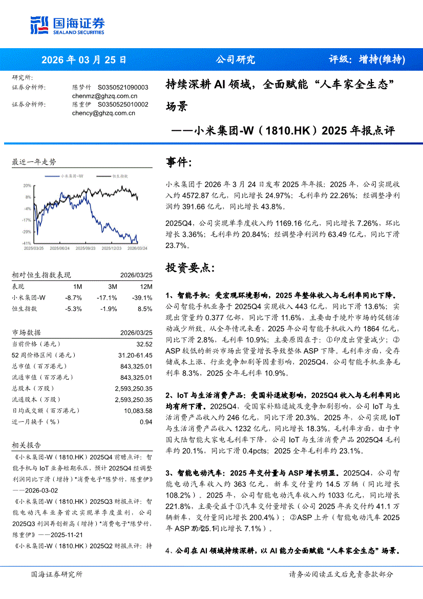 小米集团~W:国海证券-小米集团~W-1810.HK-2025年报点评:持续深耕AI领域,全面赋能“人车家全生态”场景-260325