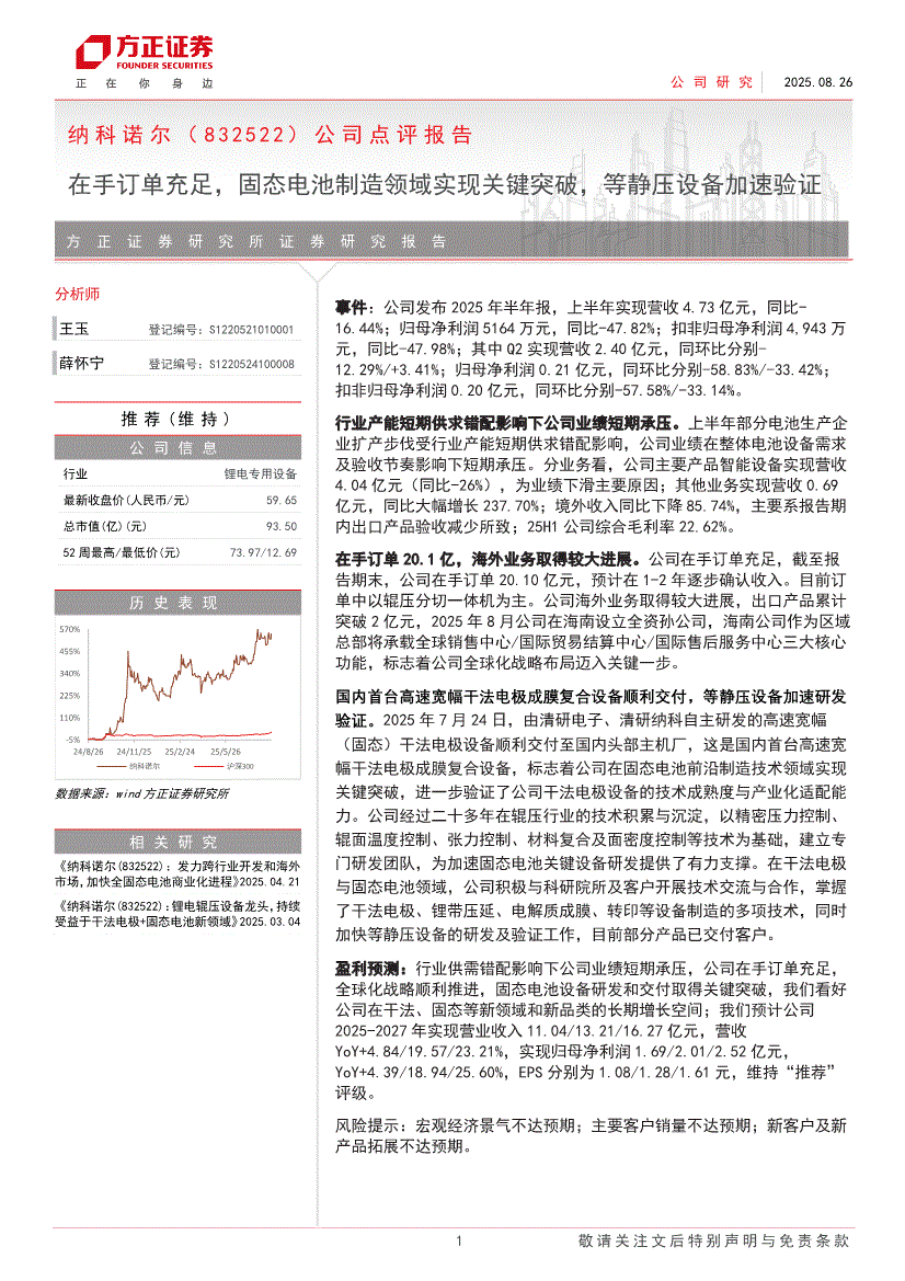 纳科诺尔:方正证券-纳科诺尔-920522-公司点评报告:在手订单充足,固态电池制造领域实现关键突破,等静压设备加速验证-250826