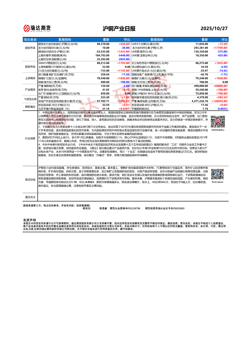 瑞达期货-沪铜产业日报-251027