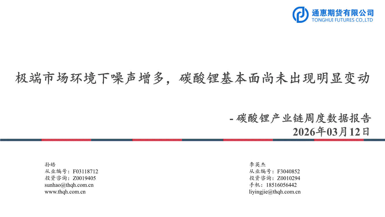 通惠期货-碳酸锂产业链周度数据报告:极端市场环境下噪声增多,碳酸锂基本面尚未出现明显变动-260312