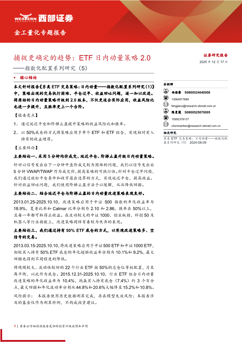 西部证券-指数化配置系列研究(5):捕捉更确定的趋势,ETF日内动量策略2.0-251217