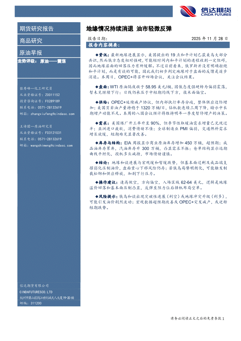 信达期货-原油早报:地缘情况持续消退,油市轻微反弹-251128