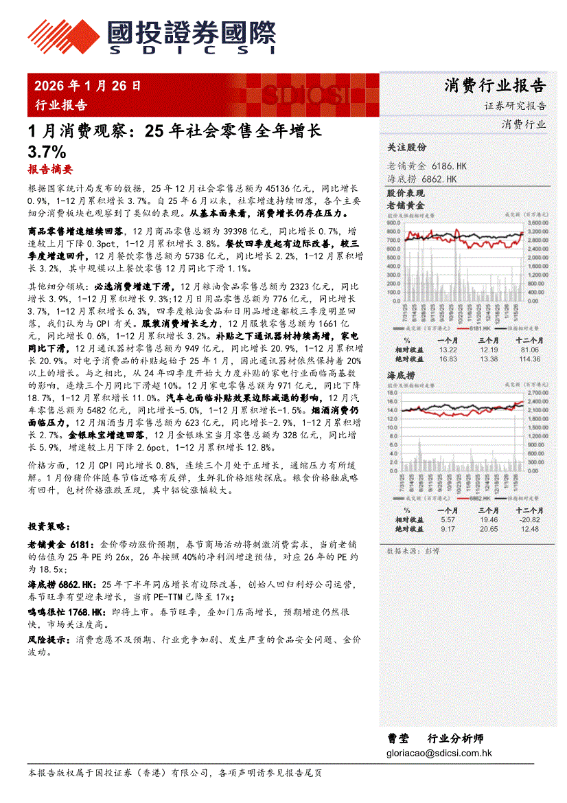 消费行业:国投证券国际-消费行业1月消费观察:25年社会零售全年增长3.7%-260126
