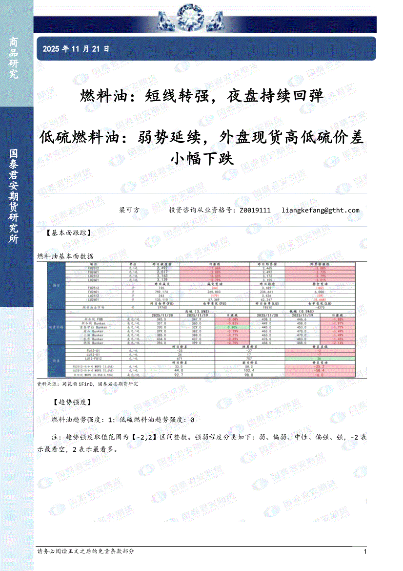 国泰君安期货-燃料油:短线转强,夜盘持续回弹,低硫燃料油,弱势延续,外盘现货高低硫价差小幅下跌-251121