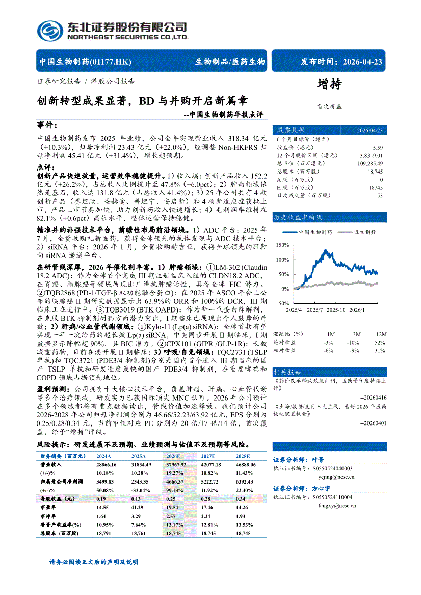 中国生物制药:东北证券-中国生物制药-1177.HK-年报点评:创新转型成果显著,BD与并购开启新篇章-260423