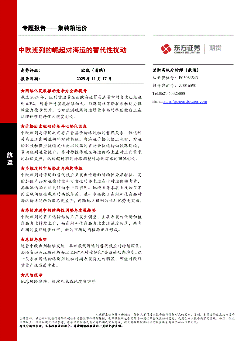 东证期货-专题报告——集装箱运价:中欧班列的崛起对海运的替代性扰动-251117