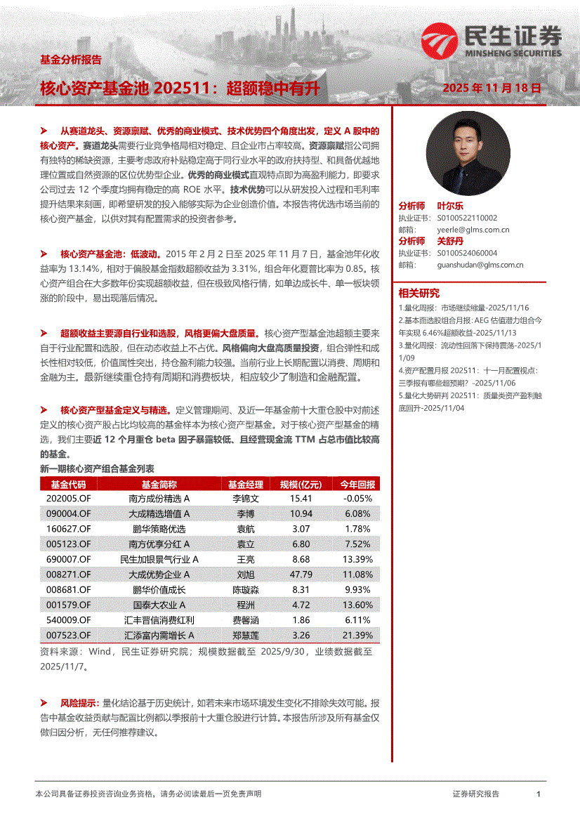 民生证券-基金分析报告:核心资产基金池202511,超额稳中有升-251118