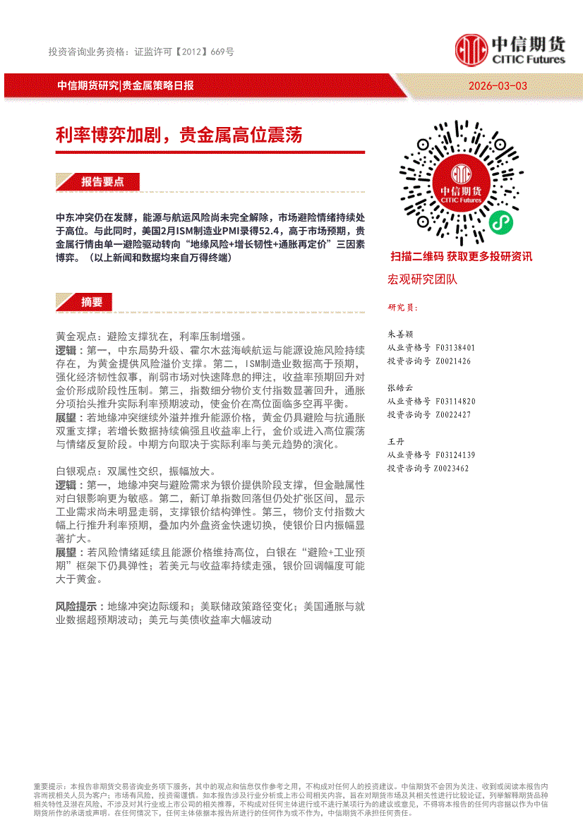 中信期货-贵金属策略日报:利率博弈加剧,贵金属高位震荡-260303