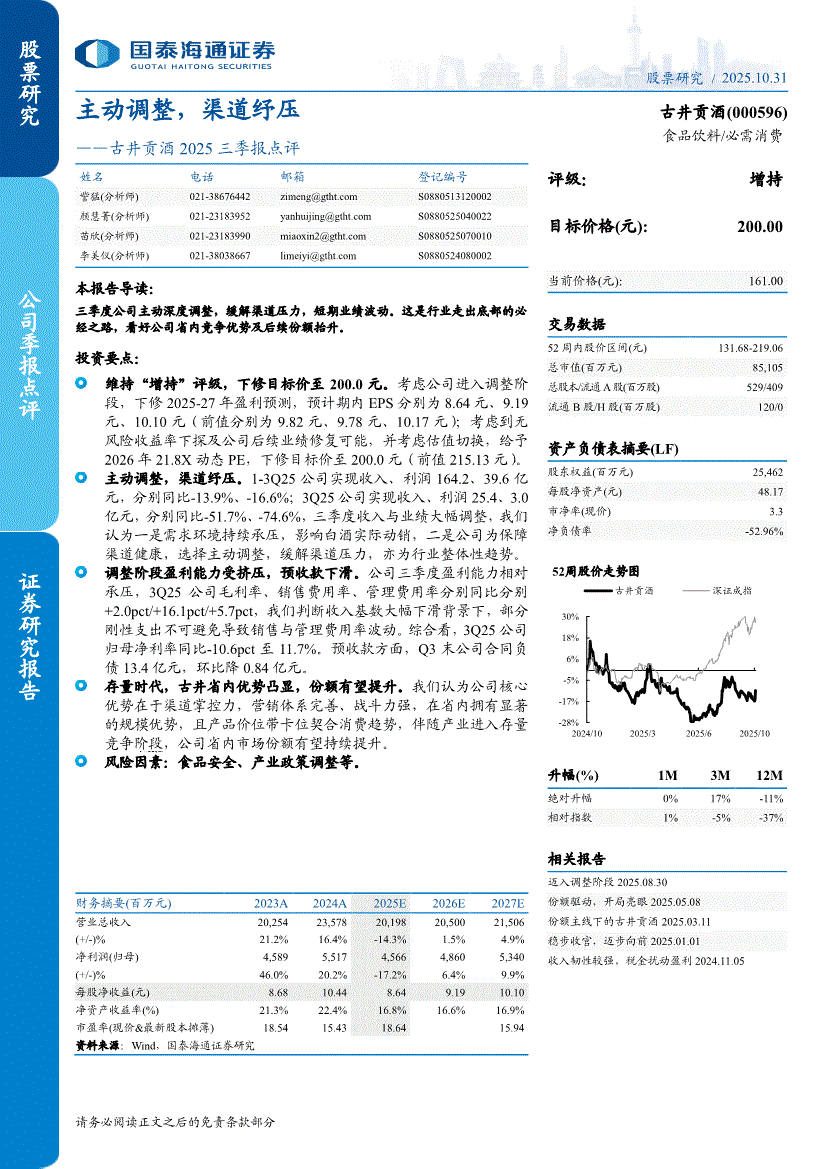 古井贡酒:国泰海通证券-古井贡酒-000596-2025三季报点评:主动调整,渠道纾压-251031