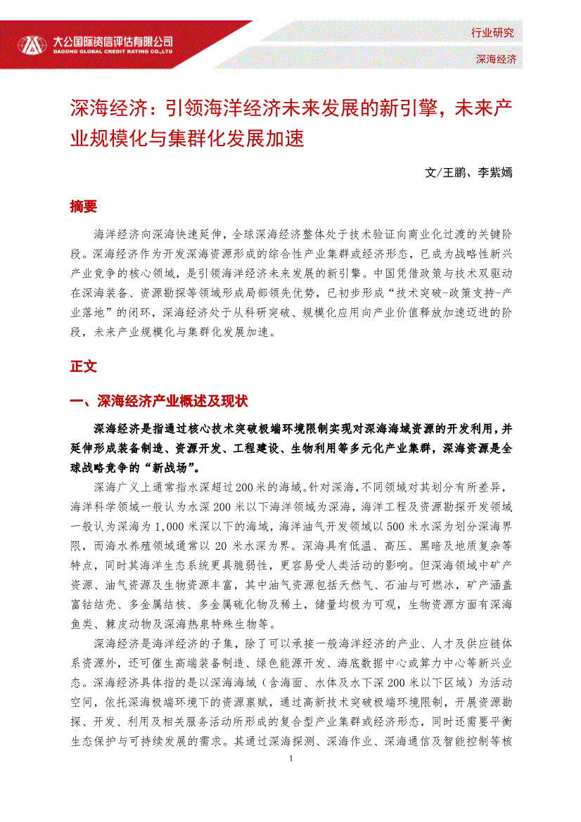 大公国际-深海经济:引领海洋经济未来发展的新引擎,未来产业规模化与集群化发展加速-251231