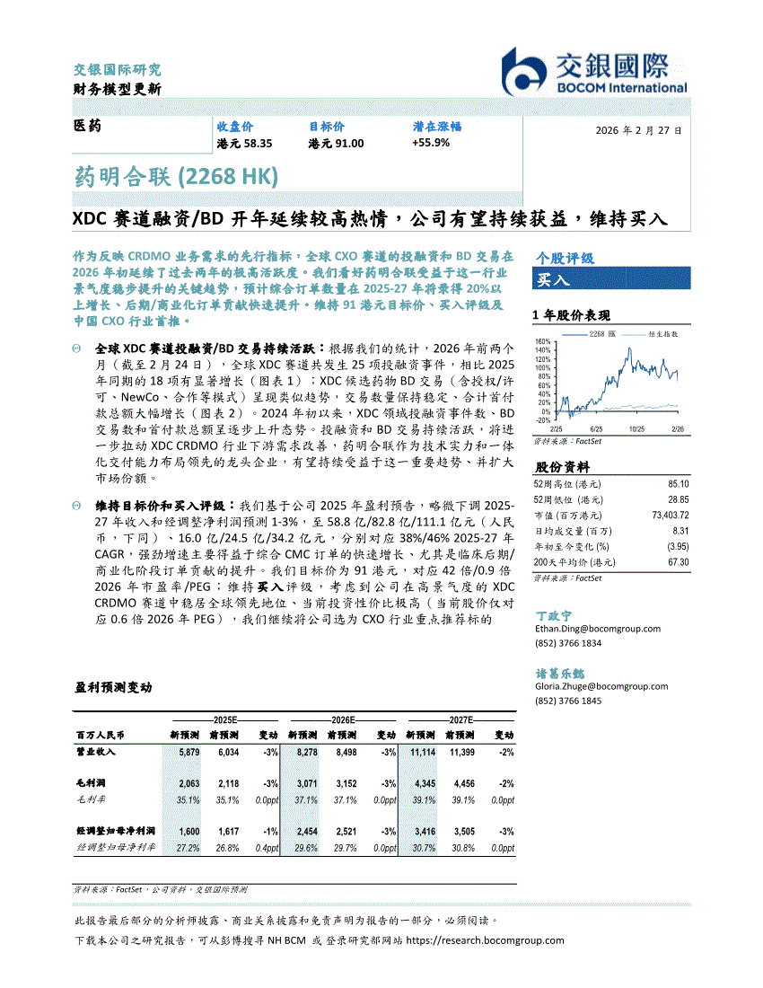 药明合联:交银国际-药明合联-2268.HK-XDC赛道融资/BD开年延续较高热情,公司有望持续获益,维持买入-260227