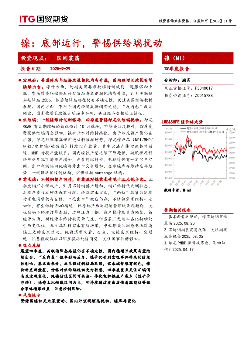国贸期货-镍四季度报告:底部运行,警惕供给端扰动-250929