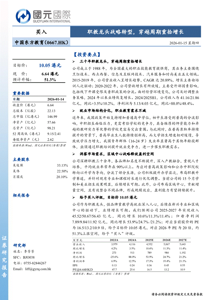 中国东方教育:国元国际-中国东方教育-0667.HK-职教龙头战略转型,穿越周期重拾增长-260115