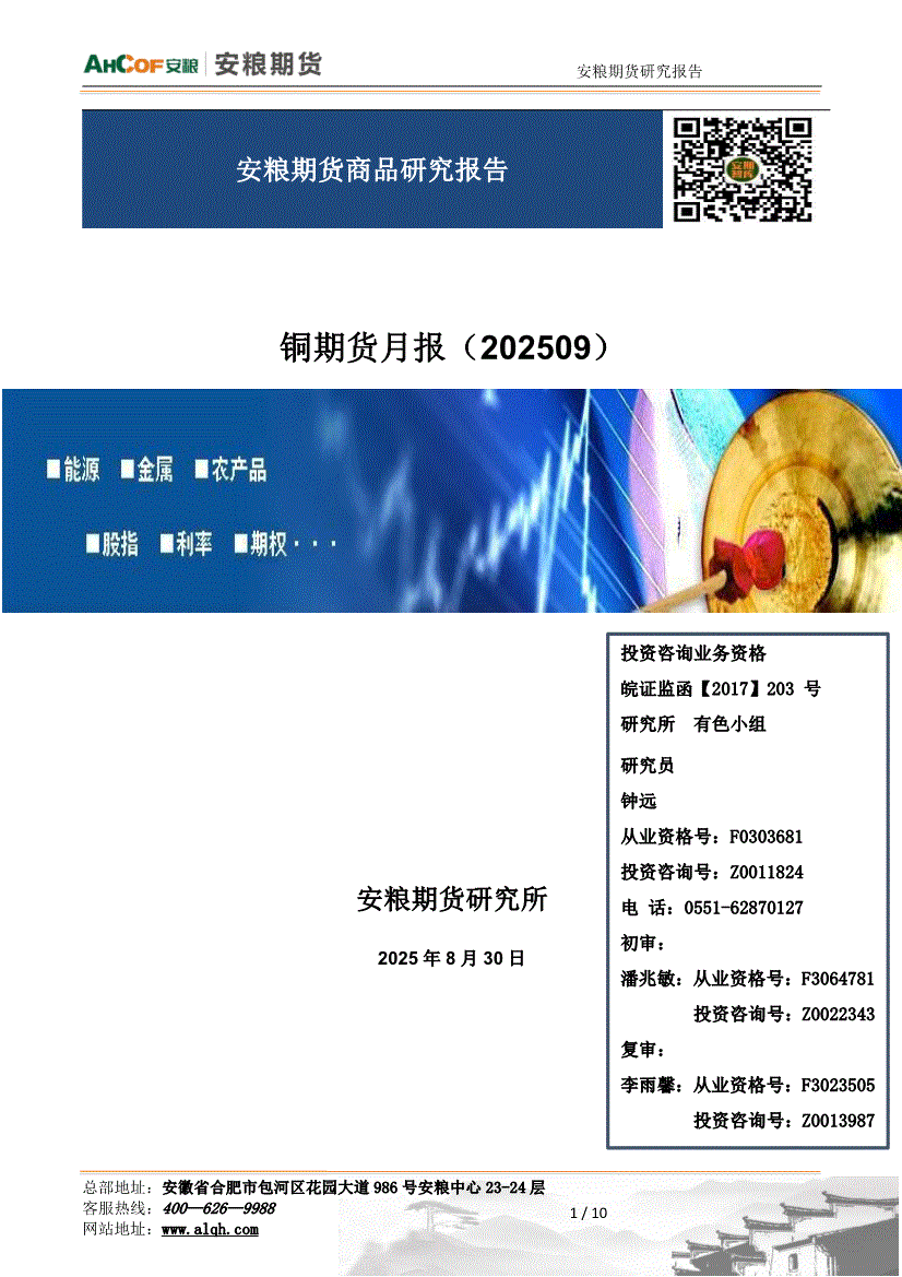 安粮期货-铜期货月报:综述,关注9月降息对铜价的影响-250830