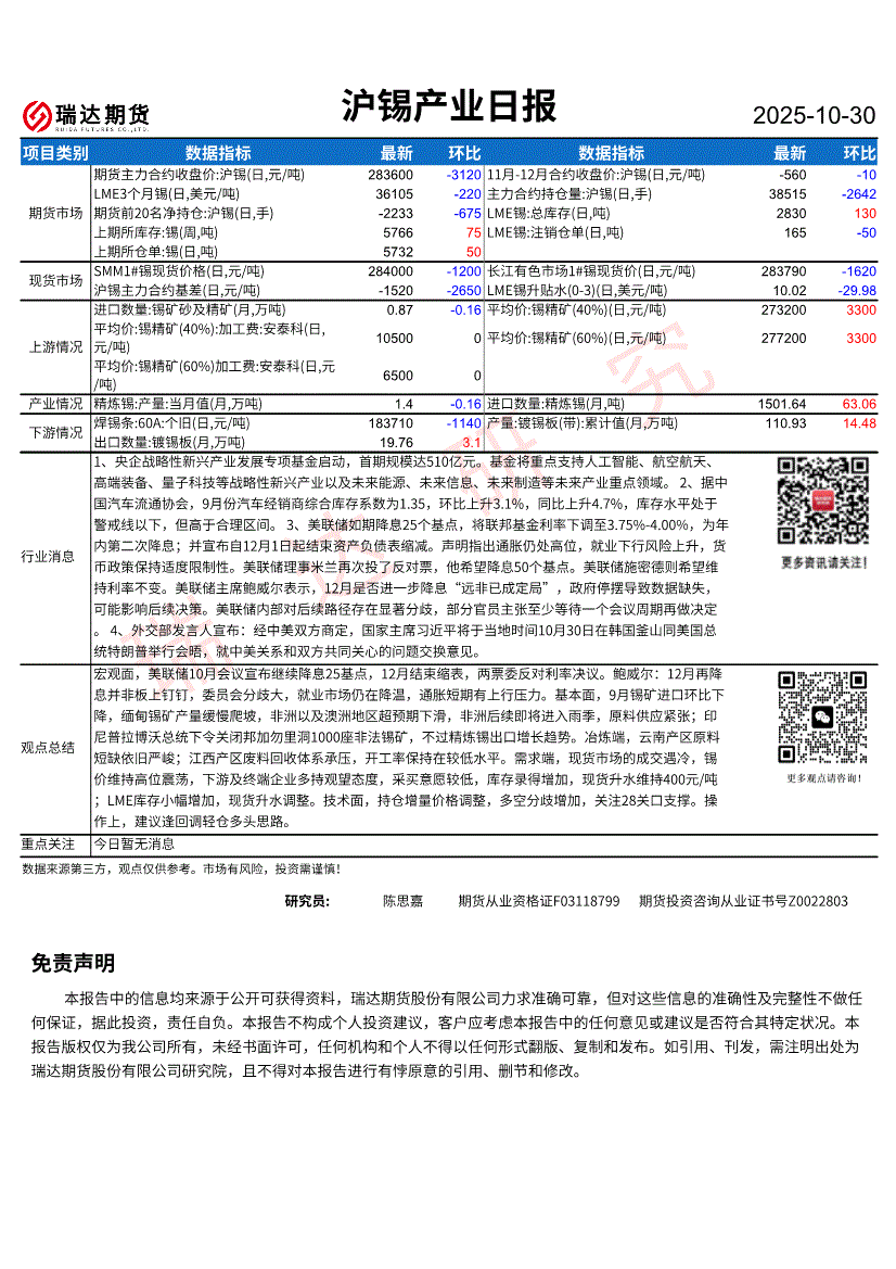 瑞达期货-沪铜市场周报:需求渐暖预期向好,沪铜或将有所支撑-251031