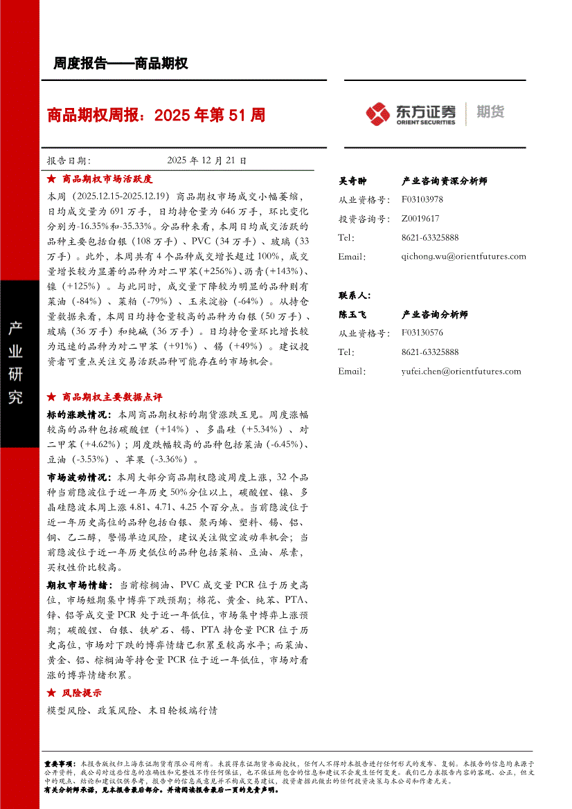 东证期货-商品期权周报:2025年第51周-251221