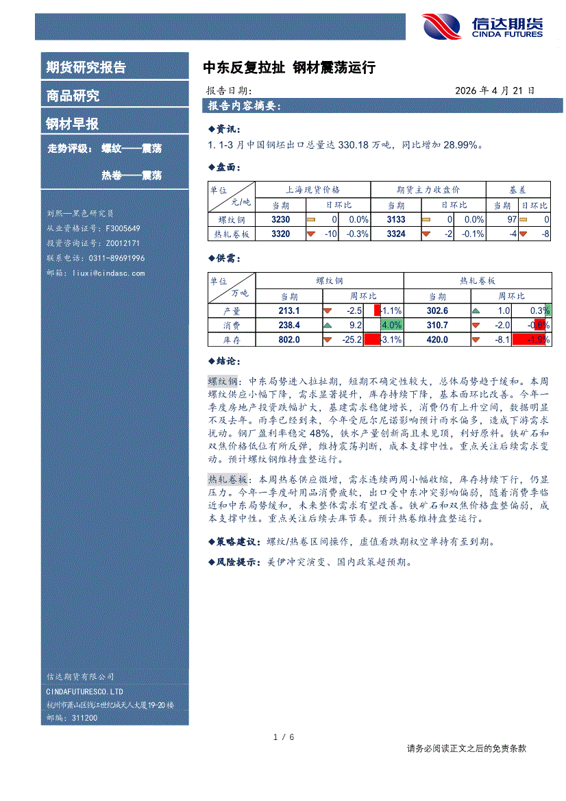 信达期货-钢材早报:中东反复拉扯,钢材震荡运行-260421