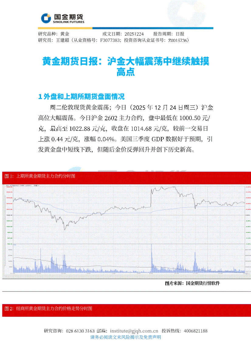 国金期货-黄金期货日报:沪金大幅震荡中继续触摸高点-251224
