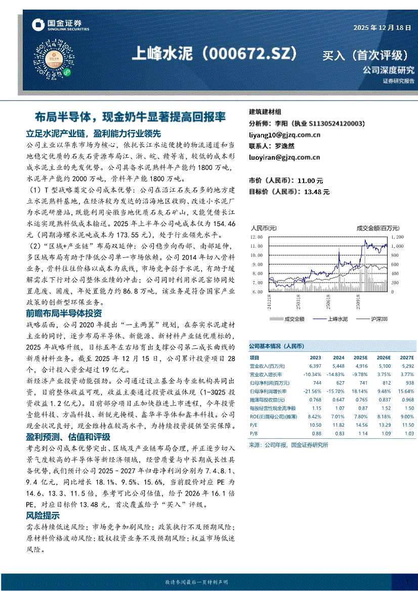 上峰水泥:国金证券-上峰水泥-000672-布局半导体,现金奶牛显著提高回报率-251218