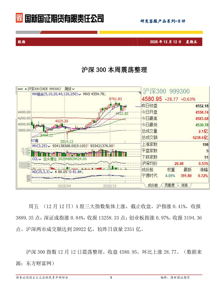 国新国证期货-股指日评:沪深300本周震荡整理-251212