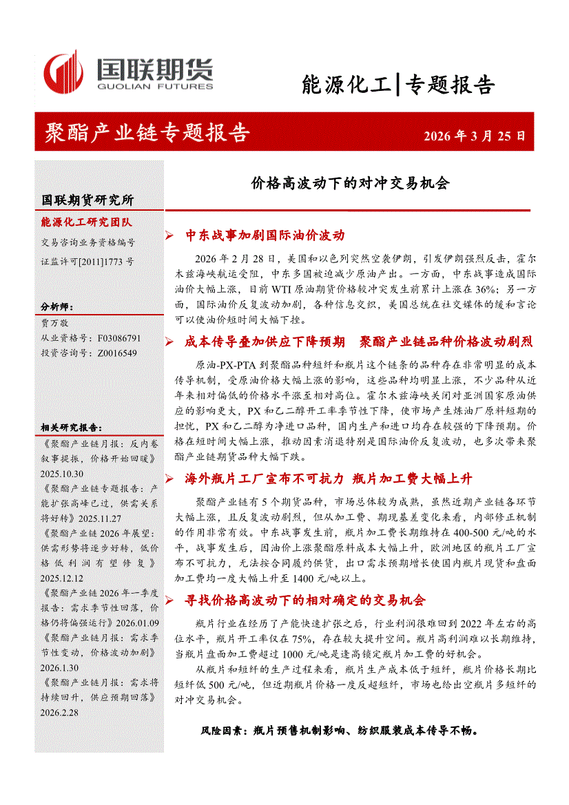 国联期货-聚酯产业链专题报告:价格高波动下的对冲交易机会-260325
