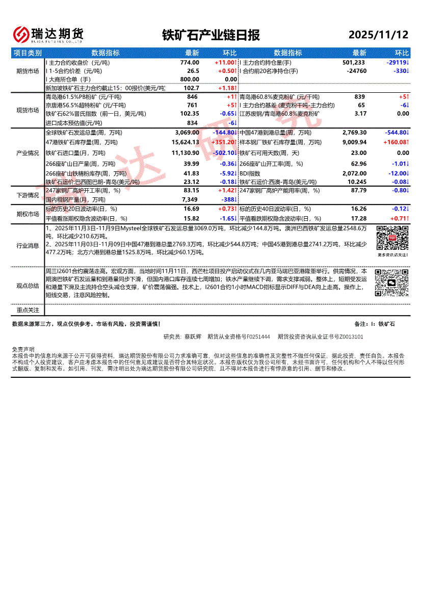 瑞达期货-铁矿石市场周报:现货表现坚挺,铁矿期价震荡偏强-251128