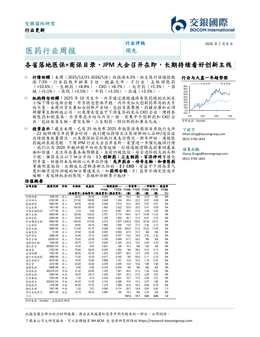 医药行业:交银国际-医药行业周报:各省落地医保+商保目录、JPM大会召开在即,长期持续看好创新主线-260108