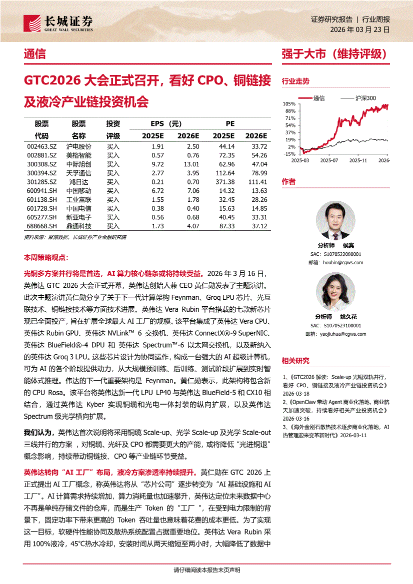 通信行业:长城证券-通信行业周报:GTC2026大会正式召开,看好CPO、铜链接及液冷产业链投资机会-260323