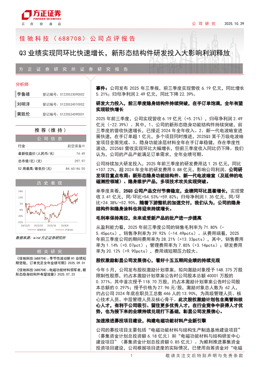 佳驰科技:方正证券-佳驰科技-688708-公司点评报告:Q3业绩实现同环比快速增长,新形态结构件研发投入大影响利润释放-251029
