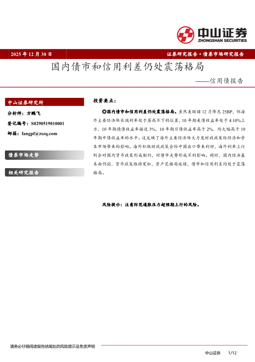中山证券-信用债报告:国内债市和信用利差仍处震荡格局-251230