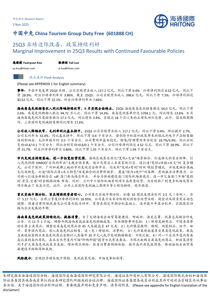 中国中免:海通国际-中国中免-601888-25Q3业绩边际改善,政策持续利好-251103