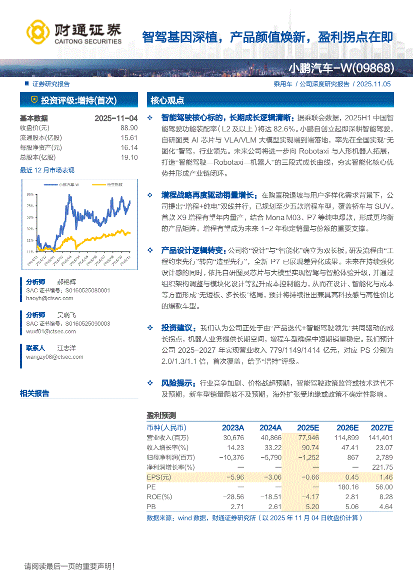 小鹏汽车~W:财通证券-小鹏汽车~W-9868.HK-智驾基因深植,产品颜值焕新,盈利拐点在即-251105