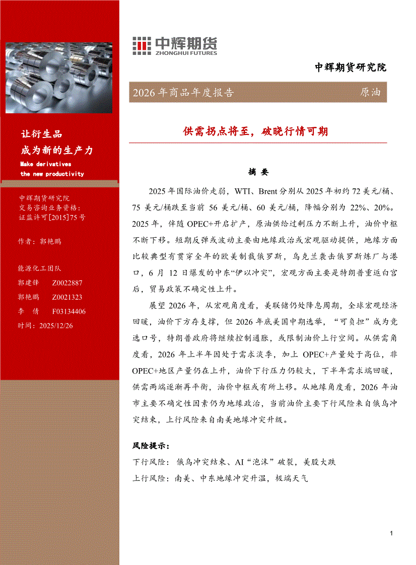 中辉期货-2026年商品年度报告:原油,供需拐点将至,破晓行情可期-251226