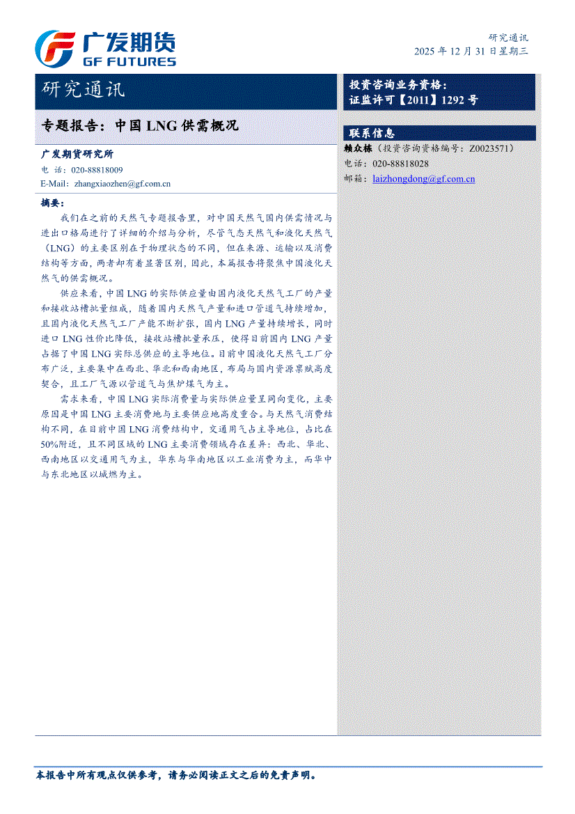 广发期货-专题报告:中国LNG供需概况-251231